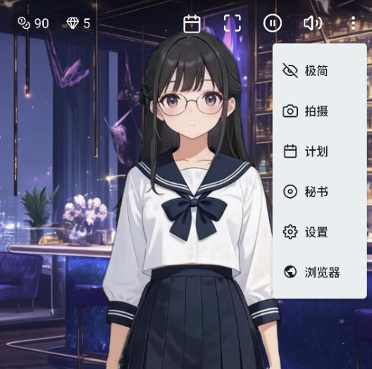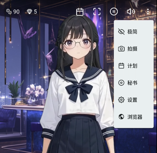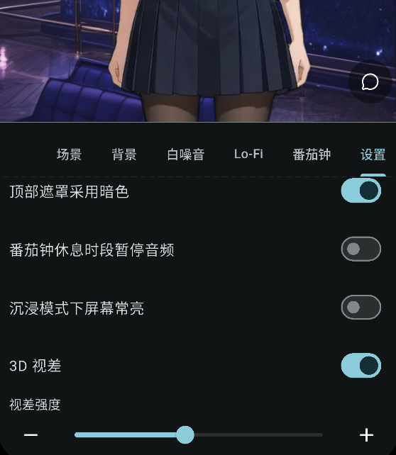 如果设备支持,你会看到背景和角色有轻微的“跟随移动”效果(像 3D 一样)。这个效果可在下半部分的“设置面板 → 设置 → 3D 视差”里开关,并能调节强度。