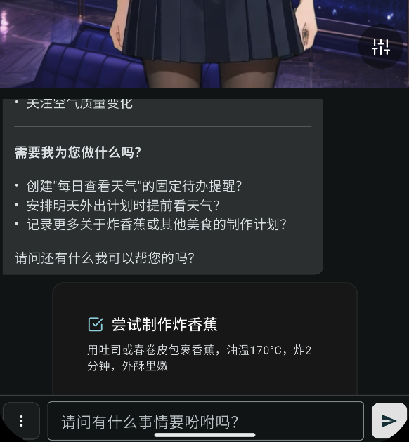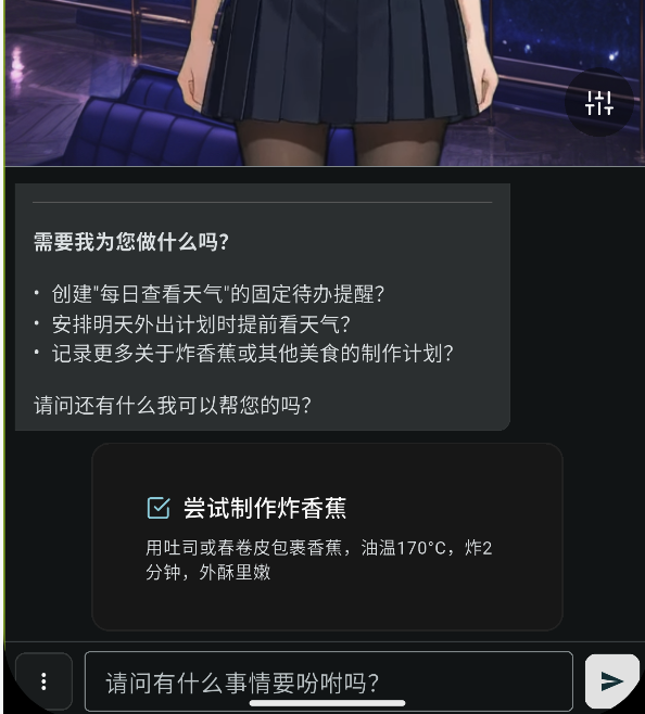 • AI/智能体能力:根据你的输入生成回复、执行工具调用(如创建待办/闹钟、读取日程、读取/更新秘书条目、抓取网页内容等)